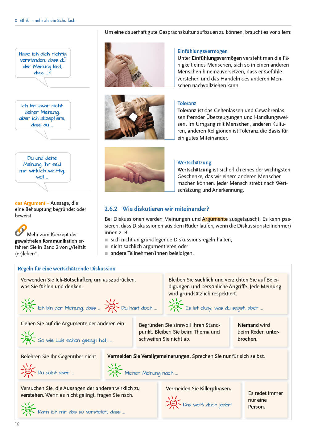 Erleben Sie mit der Ethik Schulbuch-Reihe „Vielfalt (er)leben“, wie unterschiedliche Weltanschauungen das Leben der Schüler/innen bereichern können. Inspirierende Inhalte, zahlreiche Texte, interessante Persönlichkeiten und ein reichhaltiger Methodenpool helfen dabei, andere Werthaltungen und Glaubensvorstellungen kennenzulernen und zu respektieren. Der Mut, über den eigenen Tellerrand zu schauen, wird gefördert und bietet viel Gesprächsstoff für einen anregenden Unterricht.