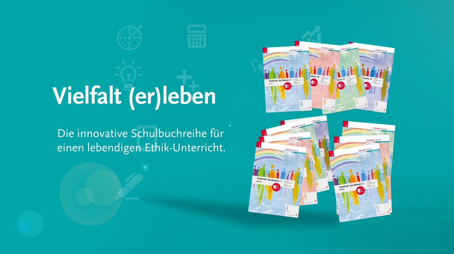 Erleben Sie mit der Ethik Schulbuch-Reihe „Vielfalt (er)leben“, wie unterschiedliche Weltanschauungen das Leben der Schüler/innen bereichern können. Inspirierende Inhalte, zahlreiche Texte, interessante Persönlichkeiten und ein reichhaltiger Methodenpool helfen dabei, andere Werthaltungen und Glaubensvorstellungen kennenzulernen und zu respektieren. Der Mut, über den eigenen Tellerrand zu schauen, wird gefördert und bietet viel Gesprächsstoff für einen anregenden Unterricht.