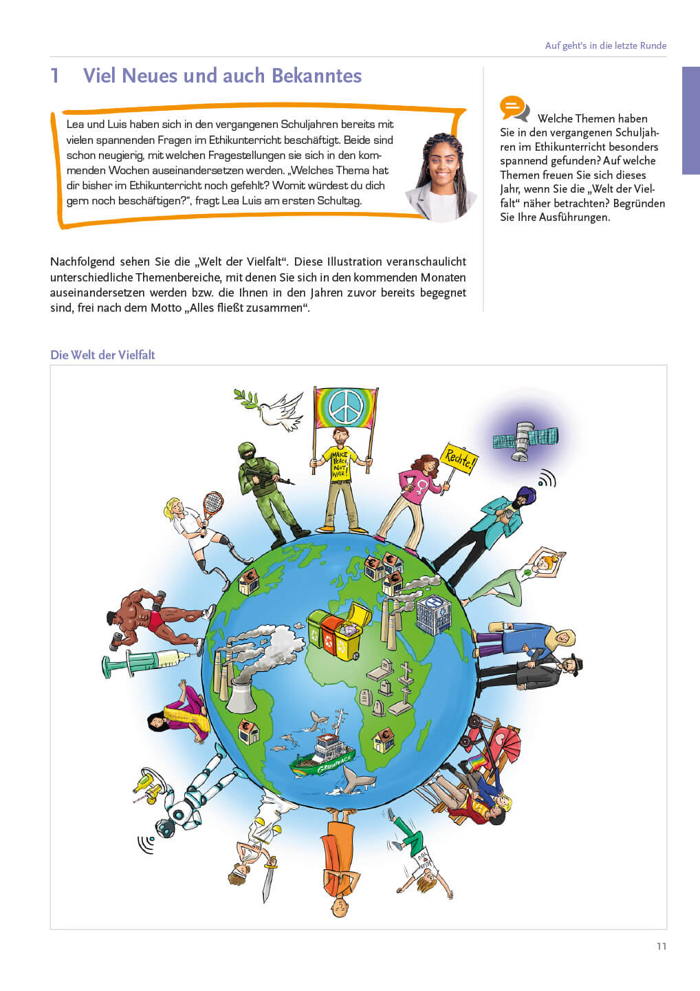 Erleben Sie mit der Ethik-Schulbuch-Reihe „Vielfalt (er)leben“, wie unterschiedliche Weltanschauungen das Leben der Schüler/innen bereichern können. Inspirierende Inhalte, zahlreiche Texte, interessante Persönlichkeiten und ein reichhaltiger Methodenpool helfen dabei, andere Werthaltungen und Glaubensvorstellungen kennenzulernen und zu respektieren. Der Mut, über den eigenen Tellerrand zu schauen, wird gefördert. Unterschiedliche Sichtweisen bieten viel Gesprächsstoff für einen anregenden Unterricht.