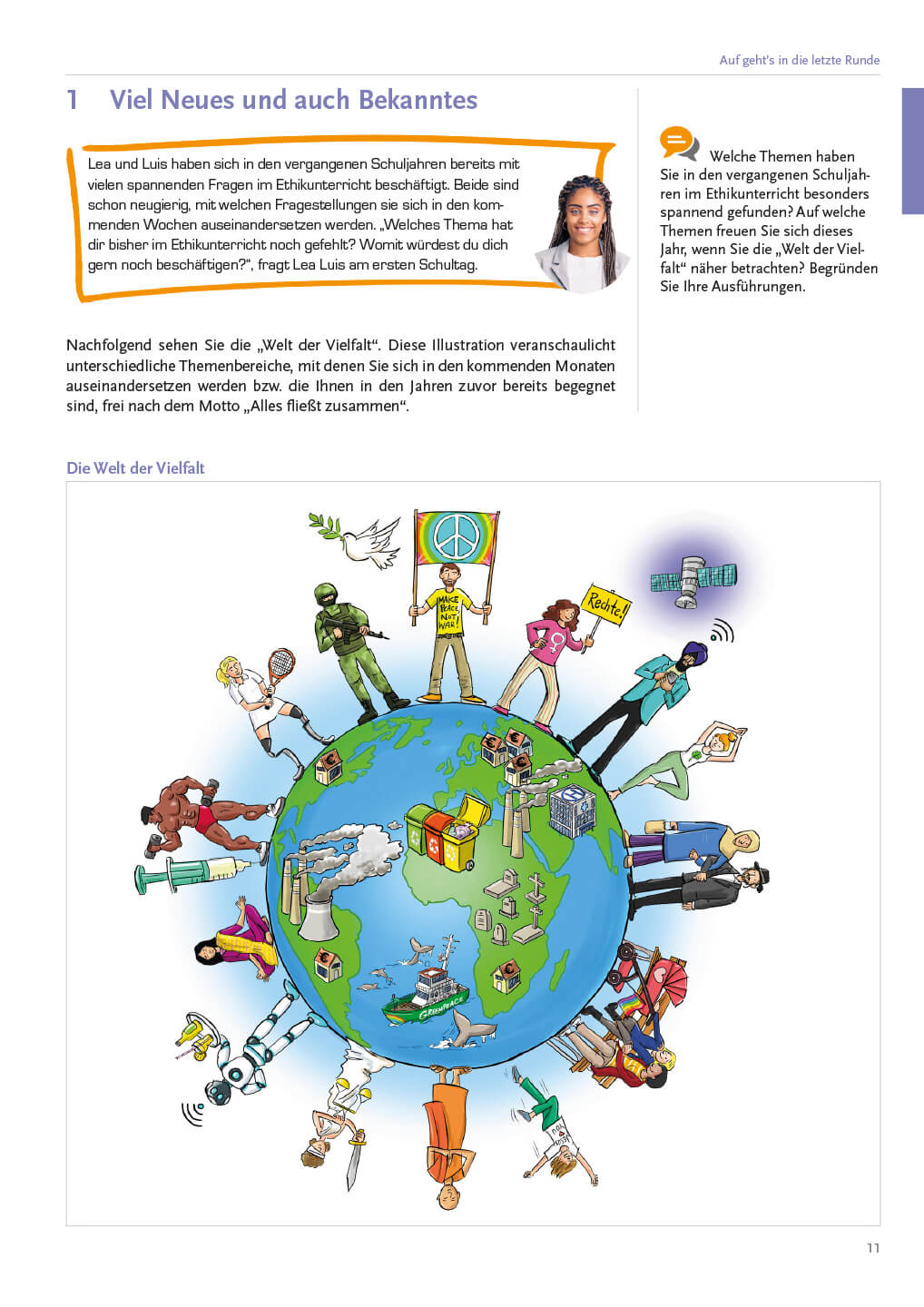 Erleben Sie mit der Ethik-Schulbuch-Reihe „Vielfalt (er)leben“, wie unterschiedliche Weltanschauungen das Leben der Schüler/innen bereichern können. Inspirierende Inhalte, zahlreiche Texte, interessante Persönlichkeiten und ein reichhaltiger Methodenpool helfen dabei, andere Werthaltungen und Glaubensvorstellungen kennenzulernen und zu respektieren. Der Mut, über den eigenen Tellerrand zu schauen, wird gefördert. Unterschiedliche Sichtweisen bieten viel Gesprächsstoff für einen anregenden Unterricht.